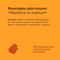 • Вкусный консервированный корм для кошек. Изготовлен из 100 % свежего мяса различного вида.