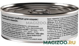 Мясные консервы для взрослых кошек с телятиной и языком.