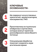 Восхитительно вкусный корм с телятиной и зеленой фасолью не только приведет в восторг Вашего питомца, но и порадует Вас великолепным составом и пищевой ценностью корма!