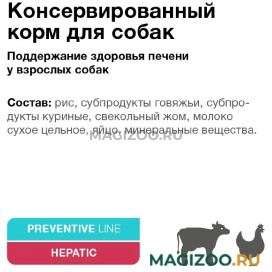 Мясные консервы Organix Hepatic – полнорационный диетический корм, предназначенный для профилактики нарушений функций печени у взрослых собак и щенков старше 14 недель. Низкое содержание меди и повышенный уровень цинка снижают токсическое воздействие на клетки печени, а адаптированное количество высоко перевариваемых протеинов, жиров и углеводов поддерживают ее функцию.