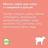 Говядина, рубец, печень, сердце, легкое, натуральная желирующая добавка, злаки (не более 2%), соль, растительное масло, вода.