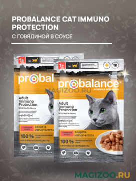 Влажный корм PROBALANCE IMMUNO PROTECTION с говядиной в соусе предназначен для ежедневного кормления взрослых кошек всех пород.