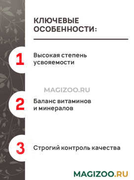 Корма компании ВЭЛКОРМ - это натуральный и полнорационный, сбалансированный продукт. В кормах нет ароматизаторов, красителей, усилителей вкуса, отсутствует ГМО. Состав тщательно подобран под весовые категории животных (маленькие, средние и крупные породы), а так же под особенности организма животных (набор веса, гиппоаллергенные и т.д.).