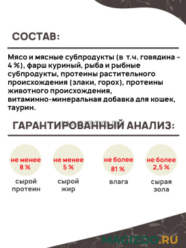 Информация о составе и ингредиентах, цветовом решении, технических и иных характеристиках, стране-изготовителе, внешнем виде и комплекте поставки товара носит справочный характер и основана на последних доступных к моменту публикации сведениях. Доставка данного товара осуществляется во все регионы РФ.Сухие и консервированные корма производится на российском подразделении ведущего датского концерна Aller Petfood A/S.