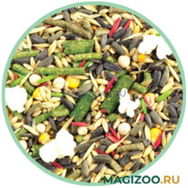 Овёс, пшеница, ячмень, семена подсолнечника, травяные гранулы, горох, кукуруза, просо белое, просо красное, суданка, воздушная кукуруза (попкорн), витамины.