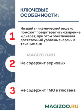 Беззерновой состав корма снижает риск аллергии и обеспечит Вашему питомцу долгую, здоровую и активную жизнь!