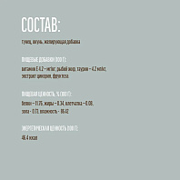 Энергетическая ценность: 3 631 кКал/кг (15,19 МДж/кг).