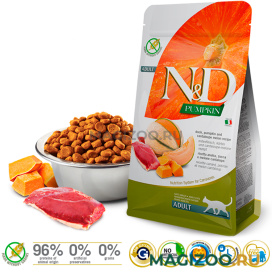 Понимание хищной природы наших четвероногих членов семьи послужило началом для ряда научных исследований по разработке и улучшению качества кормов, в соответствии с естественным рационом животных. Кошки в естественной среде обитания предпочитают мясо. Следуя этой философии, FARMINA разработала инновационную линейку N&D Pumpkin Formula. Это линейка беззерновых кормов с высоким содержанием ингредиентов животного происхождения (более 60 %) и тыквой, овощем с превосходными питательными свойствами.