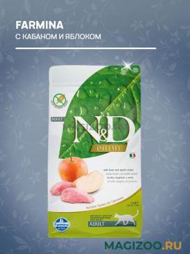 Полноценный сбалансированный беззерновой рацион класса холистик для взрослых кошек с кабаном и яблоками.