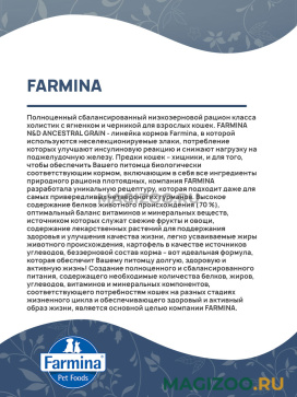 FARMINA N&D ANCESTRAL GRAIN - линейка кормов Farmina, в которой используются неселекционируемые злаки, потребление которых улучшают инсулиновую реакцию и снижают нагрузку на поджелудочную железу.
