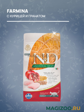 FARMINA N&D ANCESTRAL GRAIN - линейка кормов Farmina, в которой используются неселекционируемые злаки, потребление которых улучшают инсулиновую реакцию и снижают нагрузку на поджелудочную железу.