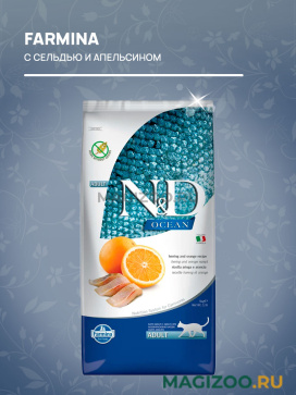 FARMINA CAT N&D OCEAN - это линия низкозерновых и беззерновых продуктов, с высоким содержанием рыбы и моллюсков.