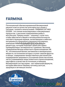 FARMINA CAT N&D OCEAN - это линия низкозерновых и беззерновых продуктов, с высоким содержанием рыбы и моллюсков.