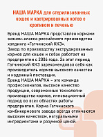 - Стоимость «Нашей Марки» для кошек остается гораздо ниже, чем у импортных аналогов, так как производство осуществляется на территории России — в городе Гатчина.