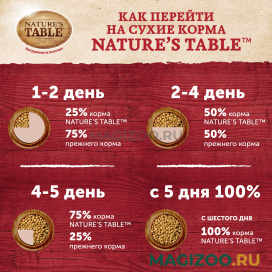 Корма Nature's Table не содержат сои, искусственных красителей, консервантов и усилителей вкуса.
