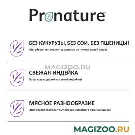 Сухие корма для питомцев PRONATURE позиционируются как соответствующие природным потребностям животных, содержащие натуральные ингредиенты и растительные экстракты. Компания-производитель называет себя одной большой семьей, а формулы кормов – «семейными рецептами».