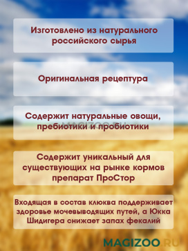 • Содержит уникальный для существующих на рынке кормов препарат ПроСтор.