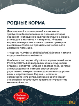 Для здоровой и полноценной жизни кошке требуется сбалансированное питание, которое содержит необходимое количество белков, жиров, углеводов, витаминов и минералов. «Родные корма» для взрослых кошек — один из примеров высококачественных премиальных кормов для домашних питомцев.