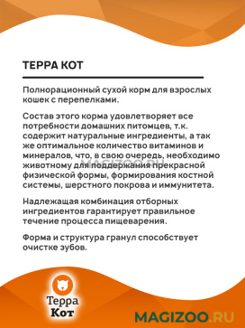 Полнорационный сухой корм для взрослых кошек с перепелками.