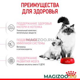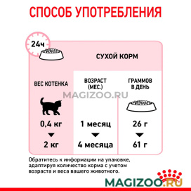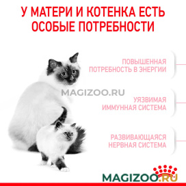 Полнорационный корм для котят в возрасте от 1 до 4 месяцев, а также для кошек в период беременности и лактации.