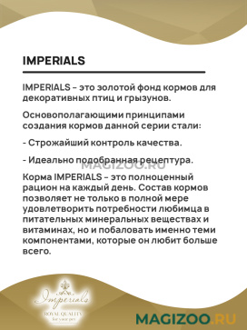IMPERIALS – это золотой фонд кормов для декоративных птиц и грызунов.