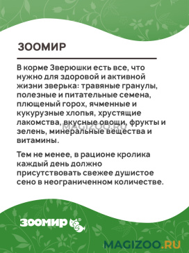 ЗООМИР Зверюшки корм для кроликов - изготовлен из качественных отборных продуктов.