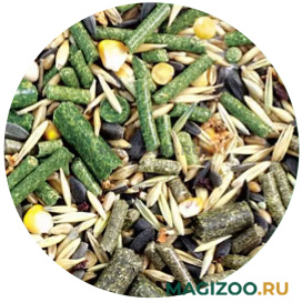 Травяные гранулы, овёс, пшеница, ячмень, семена подсолнечника, горох, кукуруза, морковь, свёкла.