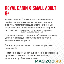 Полнорационный сухой корм для собак миниатюрных размеров, вес взрослой собаки до 4 кг, в возрасте с 8 до 12 лет. Запатентованный комплекс антиоксидантов и особые питательные вещества в составе этой формулы помогают поддерживать жизненную энергию собак миниатюрных размеров старше 8 лет, у которых появились признаки старения.