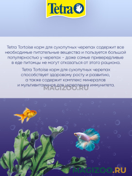 Tetra Tortoise корм для сухопутных черепах способствует здоровому росту и развитию, а также содержит комплекс минералов и мультивитаминов для укрепления иммунитета.