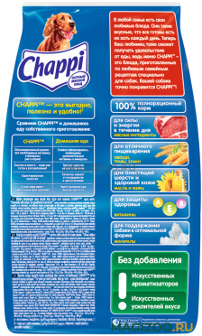 CHAPPI представляет собой качественный корм эконом-класса, который вобрал в себя особенности организма собак многих пород. Кроме того, корм для собак CHAPPI позволяет снабжать своих питомцев минералами и витаминами, а также полезными микроэлементами.