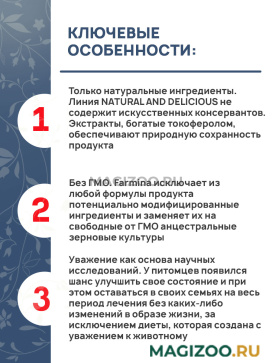источников жиров в кормах FARMINA используется куриный и рыбий жир. Рыбий жир