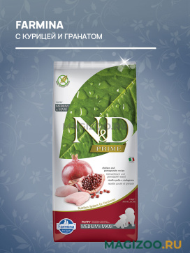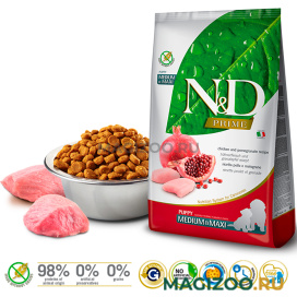 Полноценный сбалансированный беззерновой рацион класса холистик с курицей и гранатом для щенков средних и крупных пород, а также для беременных и кормящих сук.