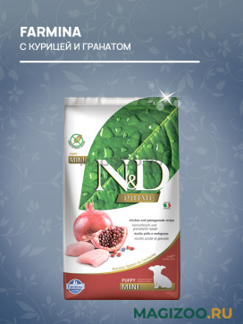 Полноценный сбалансированный беззерновой рацион класса холистик с курицей и гранатом для щенков мелких пород, а также для беременных и кормящих сук.