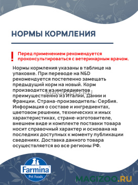 Информация о составе и ингредиентах, цветовом решении, технических и иных характеристиках, стране-изготовителе, внешнем виде и комплекте поставки товара носит справочный характер и основана на последних доступных к моменту публикации сведениях. Доставка данного товара осуществляется во все регионы РФ.Продукция FARMINA является современным стандартом безупречного качества корма. Натуральные компоненты, минеральные вещества, витамины позволяют создавать сбалансированное питание по оптимальной цене. Продукция изготавливается из сырья итальянского, французского и датского производства. FARMINA производит свою продукцию на трех собственных фабриках, которые расположены в трех странах: Италия, Бразилия и Сербия.