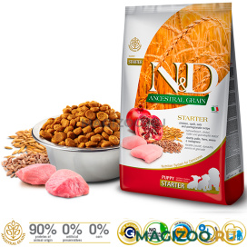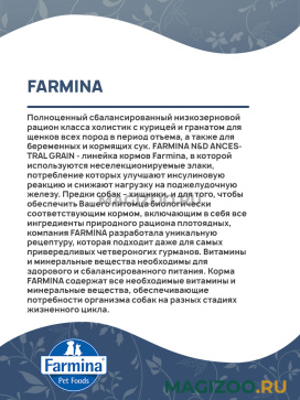 FARMINA N&D ANCESTRAL GRAIN - линейка кормов Farmina, в которой используются неселекционируемые злаки, потребление которых улучшают инсулиновую реакцию и снижают нагрузку на поджелудочную железу.