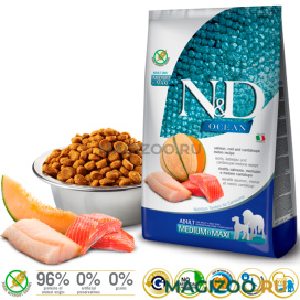 Полнорационный беззерновой корм для взрослых собак средних и крупных пород с лососем, треской, дыней.
