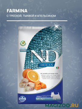 FARMINA DOG N&D OCEAN - это линия низкозерновых и беззерновых продуктов, с высоким содержанием рыбы и моллюсков.