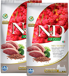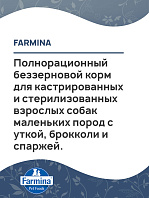 Полнорационный беззерновой корм для кастрированных и стерилизованных взрослых собак маленьких пород с уткой, брокколи и спаржей.
