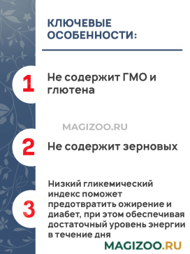 Беззерновой состав корма снижает риск аллергии и обеспечит Вашему питомцу долгую, здоровую и активную жизнь!