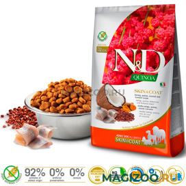 FARMINA DOG N&D GRAIN FREE QUINOA SKIN & COAT HERRING – уникальная формула для чувствительного пищеварения, полезная для восстановления и поддержания здоровья кожи и шерсти.