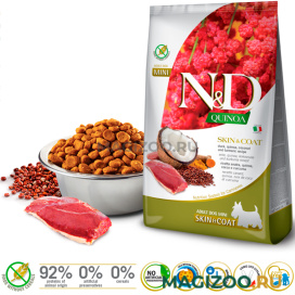 Полнорационный беззерновой сухой корм для взрослых собак мелких пород, для здоровья кожи и красоты шерсти с уткой, киноа, кокосом и куркумой.