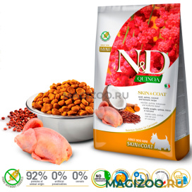 Полнорационный беззерновой сухой корм для взрослых собак мелких пород, для здоровья кожи и красоты шерсти с перепелом, киноа, кокосом и куркумой.