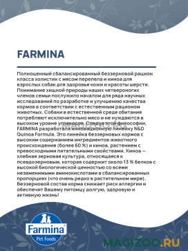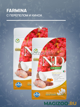 FARMINA DOG N&D GRAIN FREE QUINOA SKIN & COAT QUAIL – уникальная формула для чувствительного пищеварения, полезная для восстановления и поддержания здоровья кожи и шерсти.