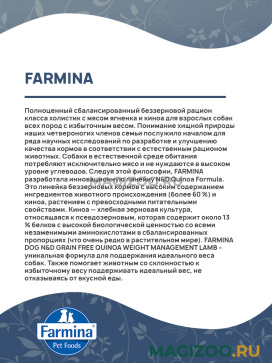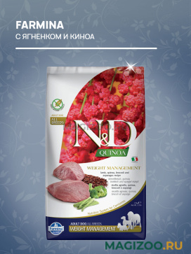 FARMINA DOG N&D GRAIN FREE QUINOA WEIGHT MANAGEMENT LAMB – уникальная формула для поддержания идеального веса собак. Также помогает животным со склонностью к избыточному весу поддерживать идеальный вес, не отказываясь от вкусной еды.