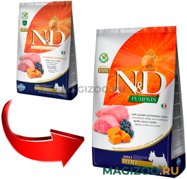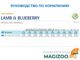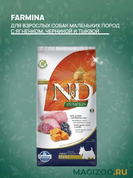 Полноценный сбалансированный беззерновой рацион класса холистик для взрослых собак мелких пород с ягненком, тыквой и черникой.