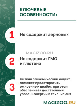Беззерновой состав корма снижает риск аллергии и обеспечит Вашему питомцу долгую, здоровую и активную жизнь!