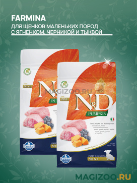 Полноценный сбалансированный беззерновой рацион класса холистик для щенков мелких пород с ягненком, тыквой и черникой.