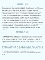 Пищевые добавки (на 1 кг): Витамин А - 25 000 МЕ Витамин D3 – 2 000 МЕ Витамин Е - 150 МЕ Содержание аминокислот (в 100 гр): Аргинин – 390 мг, гистидин – 182 мг, изолейцин – 285 мг, лейцин – 503 мг, лизин – 586 мг, метионин – 183 мг, фенилаланин – 242 мг, таурин – 36 мг, триптофан – 69,4 мг, валин – 319 мг.