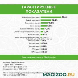 - В состав корма входят глюкозамин и хондроитин для защиты суставов.