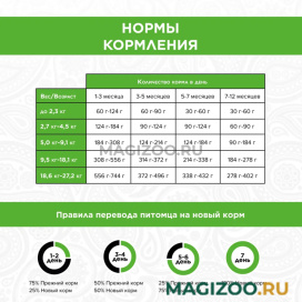 Рекомендации по кормлению: см. таблицу на упаковке.